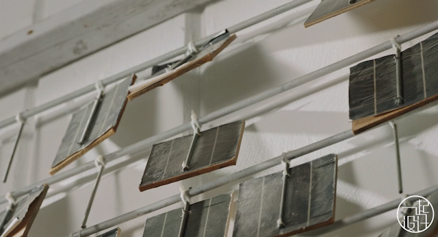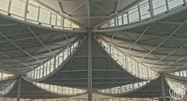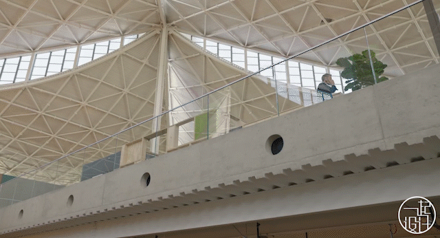 该设计被称为「微笑形的天窗」,这样的设计,让光线从侧面倾泻进来,避免了光线的直射▽