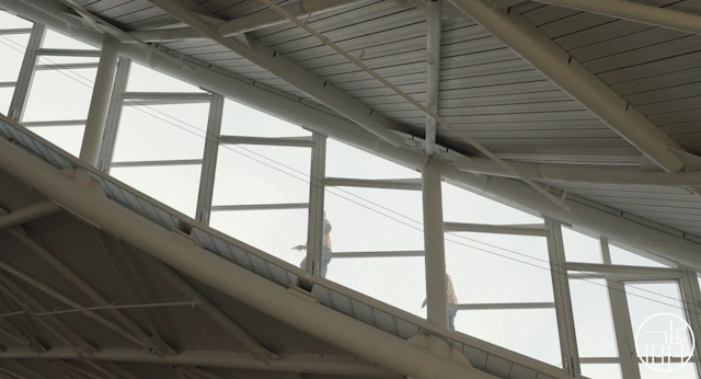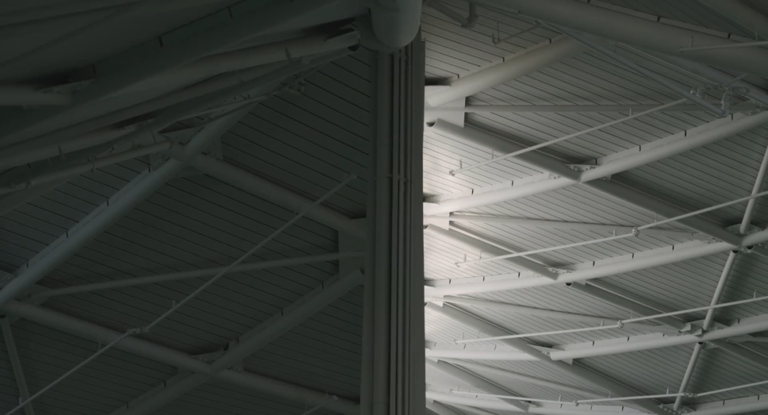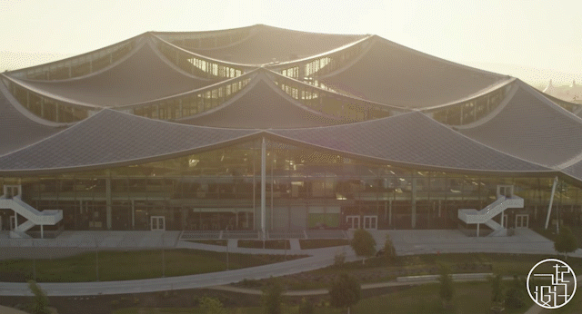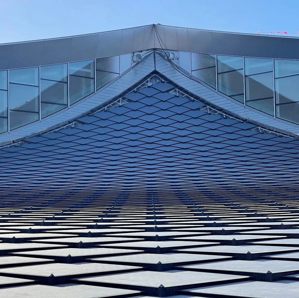 该屋顶由一个向内弯曲的面板系统组成,上面总共安装了 50,000 块太阳能电池板,可产生近 7 兆瓦的能量。