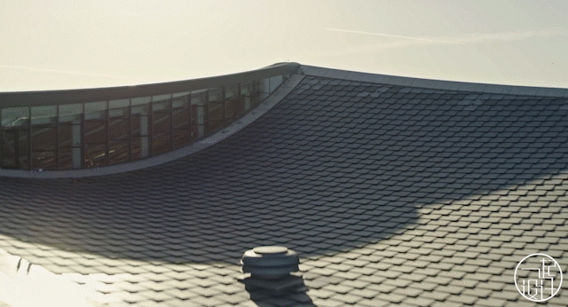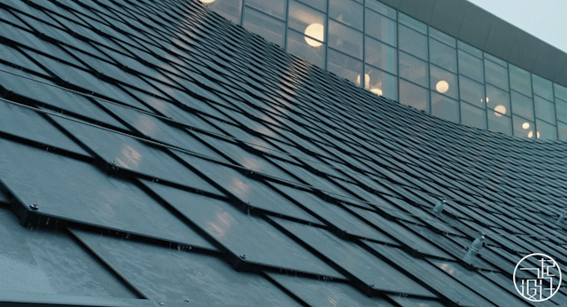 龙鳞屋顶的「太阳能瓦片以重叠的菱形结构排列,有助于防止风、雨和冰从裂缝中滑落。再加上天篷的亭子状屋顶线,使面板可从多个角度捕捉太阳的力量。
