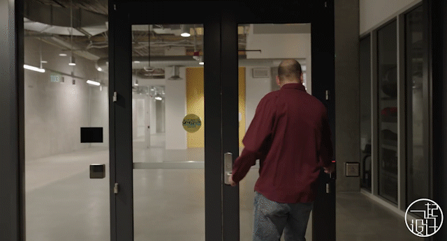 上下楼梯口设有门禁,作为工作与休息区的分界▽