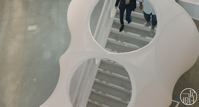 顶部的圆形开口,与楼梯侧面的穿孔设计相呼应▽