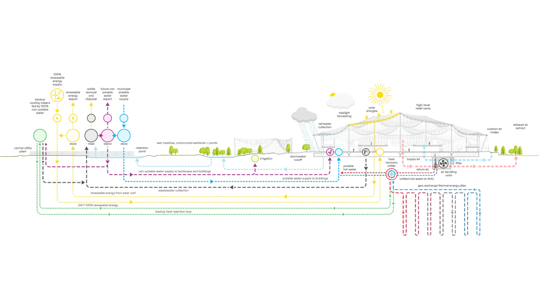 此外,在园区的设计中还使用了目前北美范围最广的地源热泵系统▽