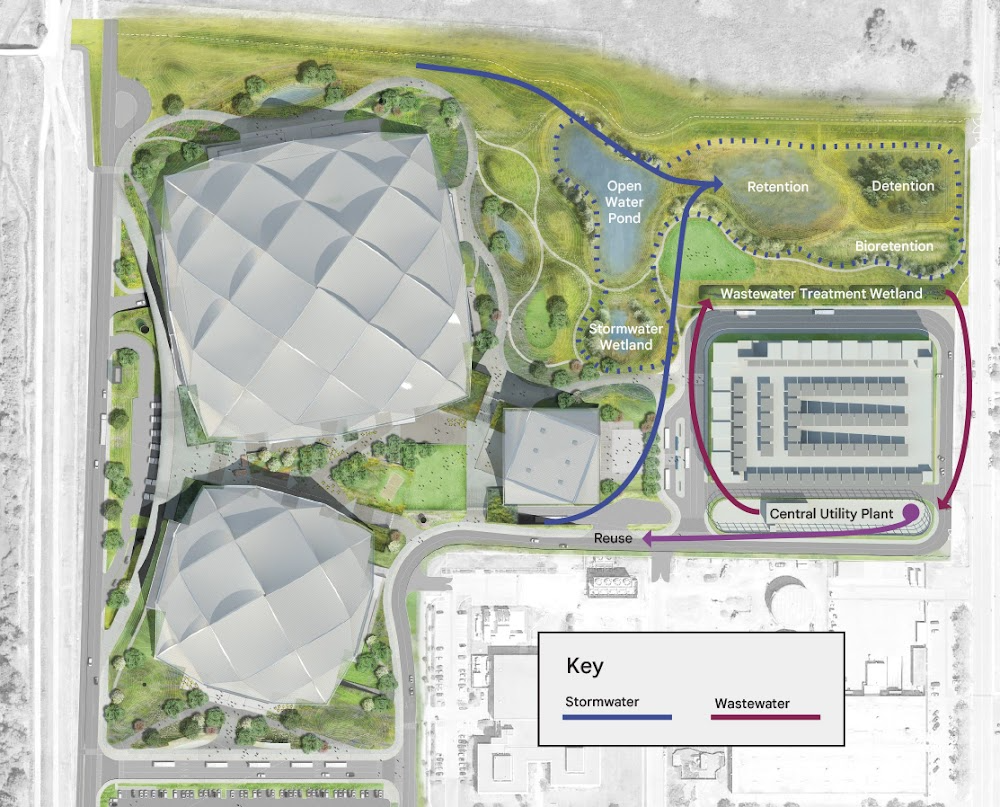 该项目是 Google 首个从零打造的全新园区,主旨是想要打造一个以人为本和以健康、可持续设计原则为优先的新工作环境,同时也将为建设及办公空间设定全新的可持续设计标准。这一项目预计在 2030 年前达到场地碳中和。