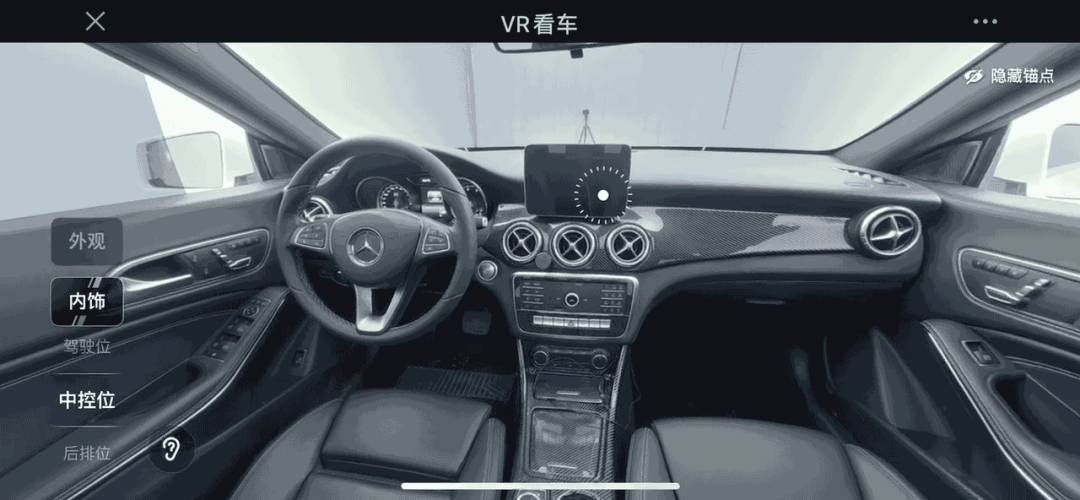 汽车内饰通过全景图呈现,由全景相机定点拍摄。全景是视角超过人常规视角的图像,特指水平和上下360度,能看到“头上”、“脚下”的全景。拍摄者使用全景相机分别摆放在汽车驾驶位、中控位、后排位并分别在手机上启动拍摄,就可以得到相应的汽车内饰全景图了。