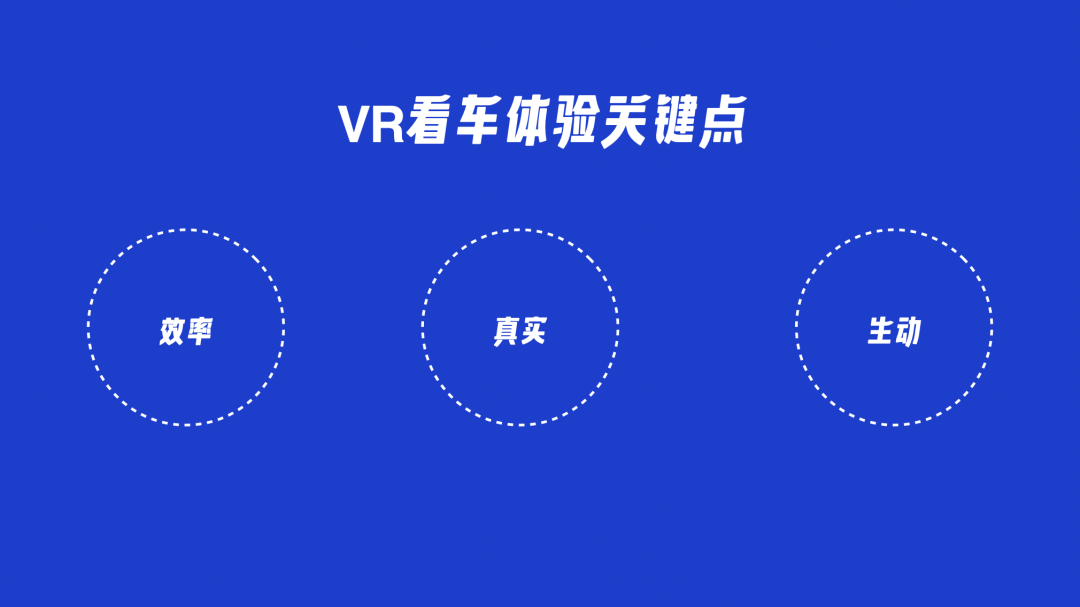 从用户侧看,VR的高互动性更具【真实感】,与用户对二手车的诉求契合。更高的信息【生动性】提供的情感化体验,让用户更易沉浸其中。相比传统的图片或视频方式,更充分的信息表达能力也提高了用户看商品的【效率】。