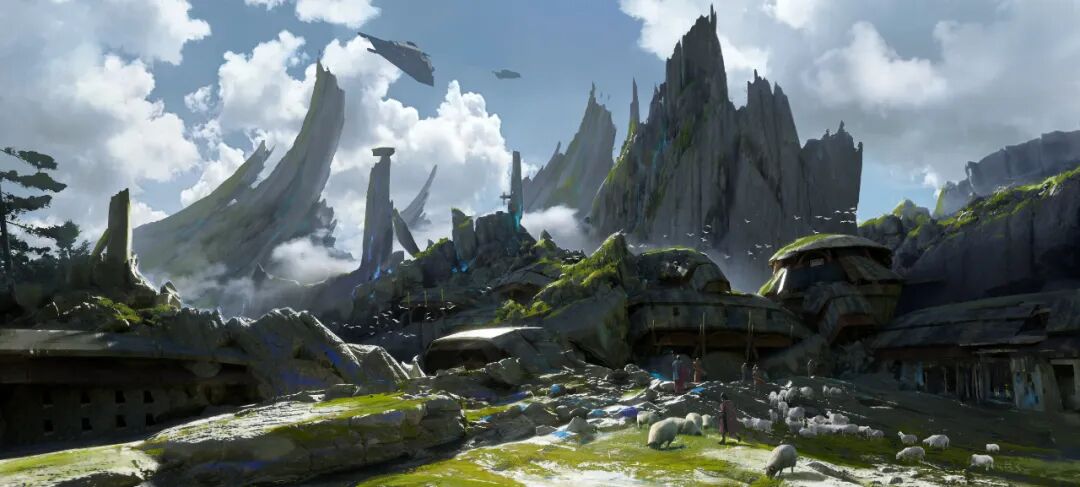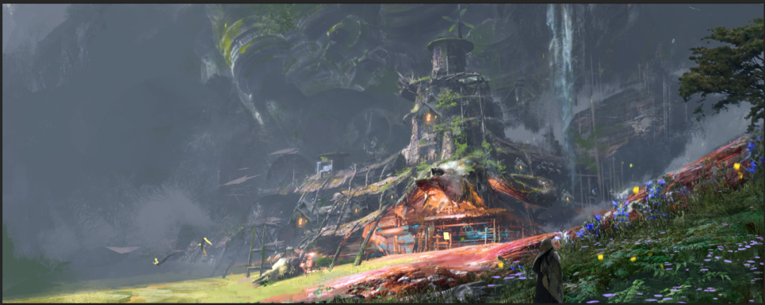 概念图的设计也类似这样,有很多的信息需要传达,但是受限与现实的刻板印象,认为山就应该是这样的样子,建筑就应该是这样子,它其实还可以是那样子,我们可以只取它的一个特征,比如轮廓,比如纹理,让它为我们的画面服务,所以不这样就会被画面控制,不敢去打破刻板印象,那就很难有好的创意出现,这里我想到了一句话,叫“看山不是山”,当我们训练出这样的思维,就可以扩大自己的想象力,可以天马行空的创作了。