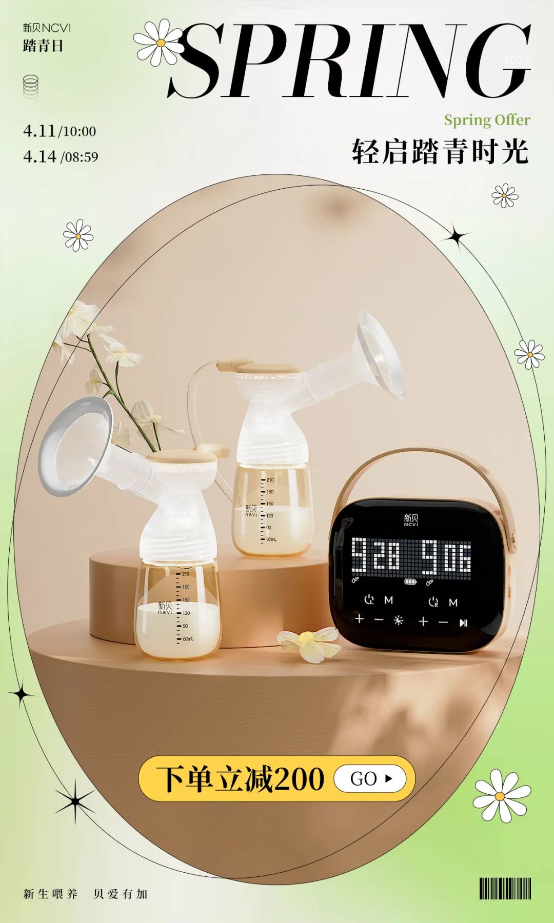 首先,每一类几何图形都有一定的调性偏向,所以要根据自己的产品调性和主体调性来选择一些气质合适的图形,例如母亲节、清明节的海报用三角形来构图就不太合适。