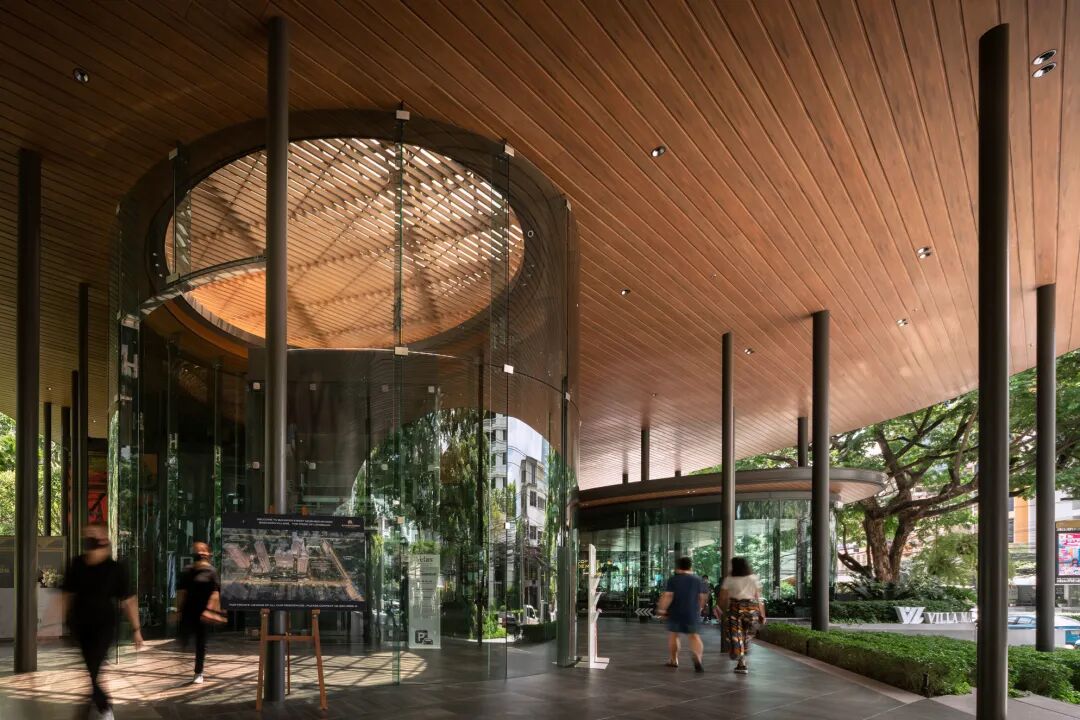 曼谷市中心的Sindhorn村体现了许多这些趋势,这座豪华的多功能开发项目是一个新的地标,激发现代且可持续的城市发展。总体规划以低密度比的宽敞绿地为特色;它包含公寓、服务式公寓、酒店和餐厅、艺术博物馆,还有一个单层的半户外零售商场与这个绿色空间融为一体,包括咖啡馆、餐馆、商店、服务和地下超市,专用于社区使用的区域散布在整个建筑群中。
