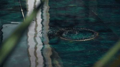 缓步前行,映入眼帘的是一抹艳丽的翠蓝,它轻盈地从我们的眼底掠过,荡漾在碧波之上,唤醒了整个场地。时尚而优雅的调性赋予了场地新的气质,诗意光影的穿梭在这一刻变得宁静而艺术。