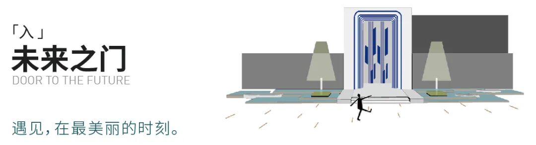 在天空背景映衬下,建筑门头、精神堡垒以及景观界面相互融合形成富有变化的天际线,如一位温柔的巨人,默默等候在你必经的路旁,期待着接受它的邀请,共赴一场未来之旅。