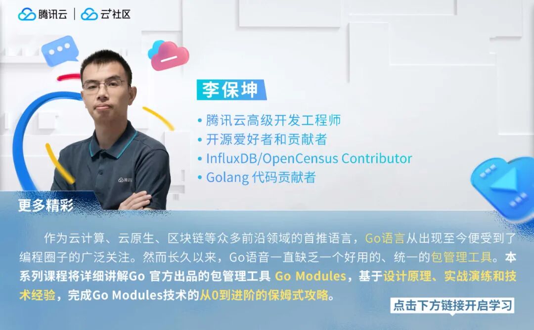 笔者在腾讯当前负责腾讯云在Go编程语言使用上的一些问题,2021年初开始负责内部goproxy服务并推广Go Modules使用,这些技术支撑了腾讯云、微信、腾讯视频、腾讯游戏、腾讯音乐、腾讯会议等明星产品,并与公司内部软件源团队、工蜂团队、TRPC团队以及各个CI团队达成密切的合作。在本系列文章中,笔者就将由浅入深帮助大家开始学习和了解Go Modules。