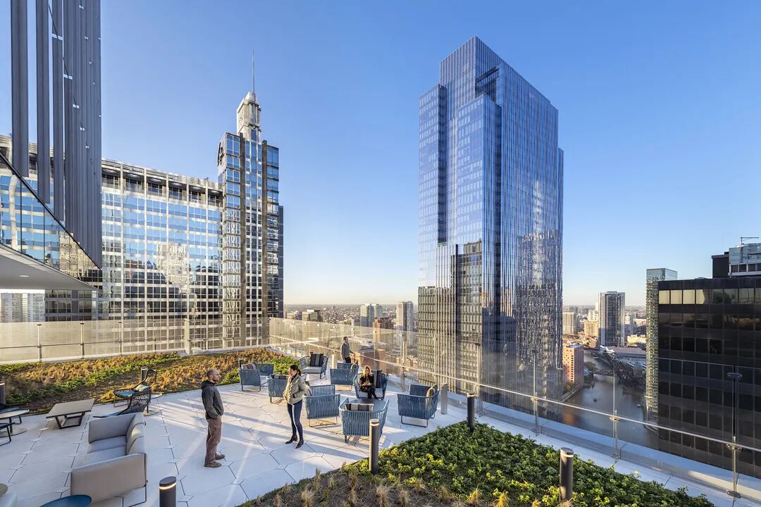塔楼退进创造了一种独特的建筑形式,突出了建筑的垂直性,避免了典型办公大楼的纯粹盒状外观。为了满足城市的要求,该设计提供了一条约14米宽的滨河步道,有约17米净高挑空。三个相距27米的大型枝状结构元素凸出沿河的结构柱,进一步打开了场地,创造一条风景优美的有盖人行道,连接两条非常重要的街道,并保持有效畅通无阻的河景。大楼在瓦克大道一侧为约14米高的全玻璃拉索墙大堂,折叠的石灰石覆盖了电梯核心筒。通透的超白玻璃墙,使室内空间融为一体,将大堂与街景和谐地合二为一。