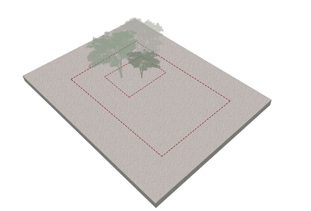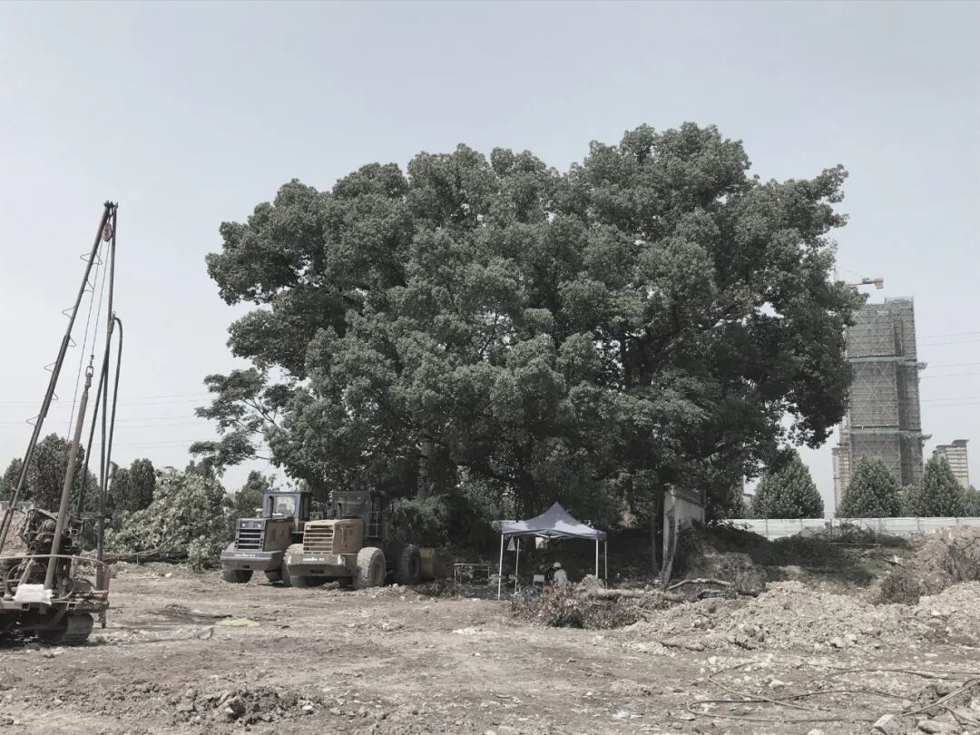 场地上120年树龄的古樟旁边,还共生着两株原生的樟树,好像是两个孙辈在听老爷爷讲故事。他们枝干交错,不分彼此;苍劲的虬枝,伸向四面八方;最小的那一株,倔强地想要逃离长辈的浓荫,努力的不断倾斜伸展着……我们和业主、建筑规划的伙伴共同讨论后,大家都一致地希望完好的保留下整个林荫,留下这份原始质朴的自然记忆。