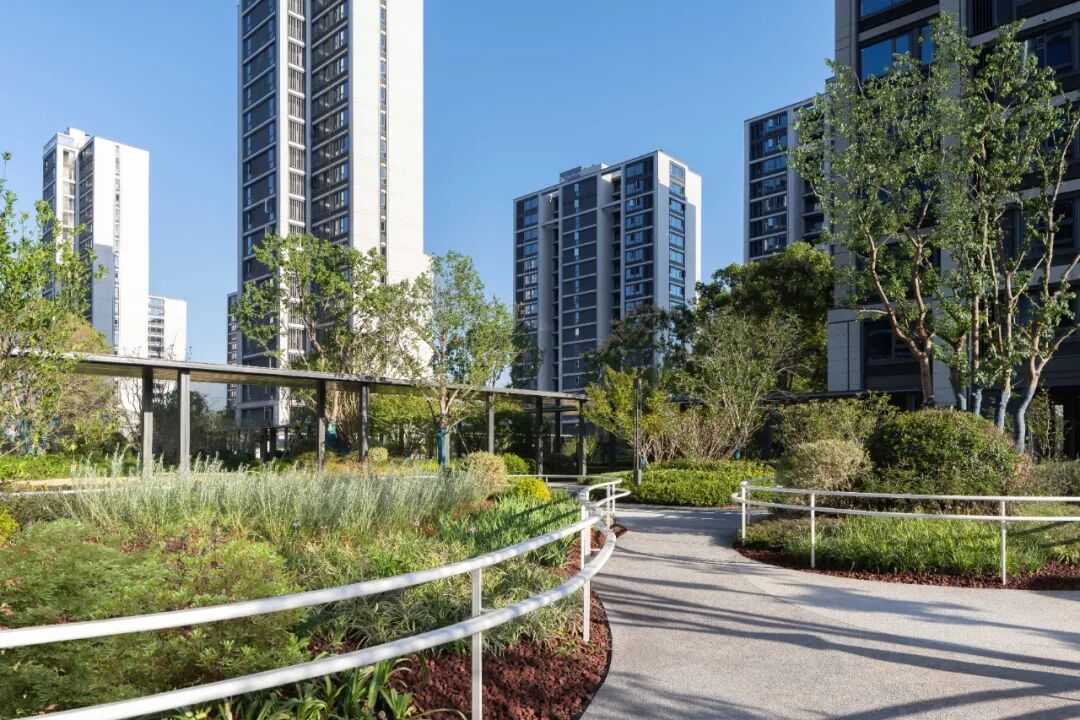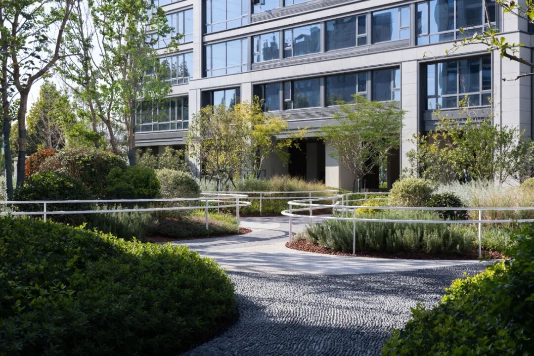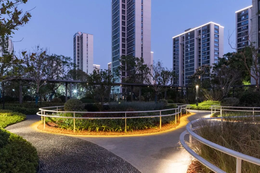 ▲疗愈系长效花境、立砌的卵石步道、连通的扶手栏杆,共同营造一处宁静的放松花园