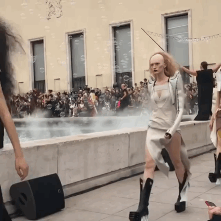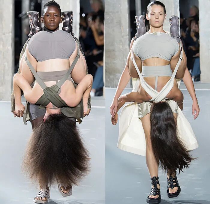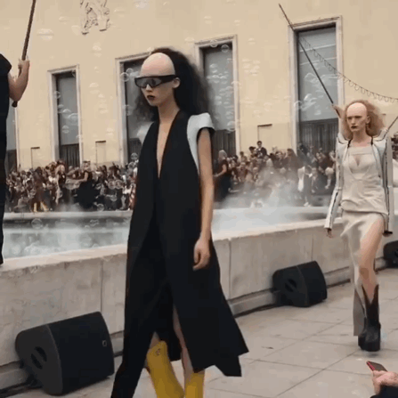 时时刻刻挑战着大众审美的Rick Owens,似乎已经成为暗黑系设计的代名词,无论是古罗马石柱的包围,还是倒置的人体都为人们来带难以想象的时尚解读。
