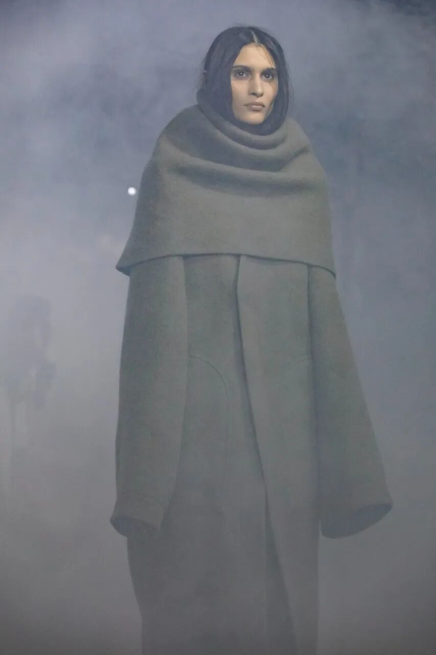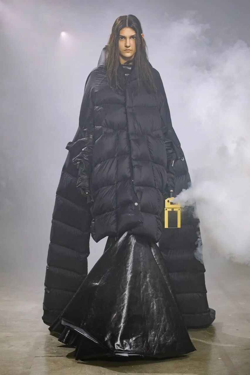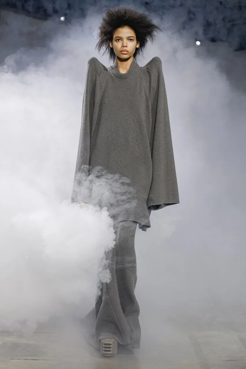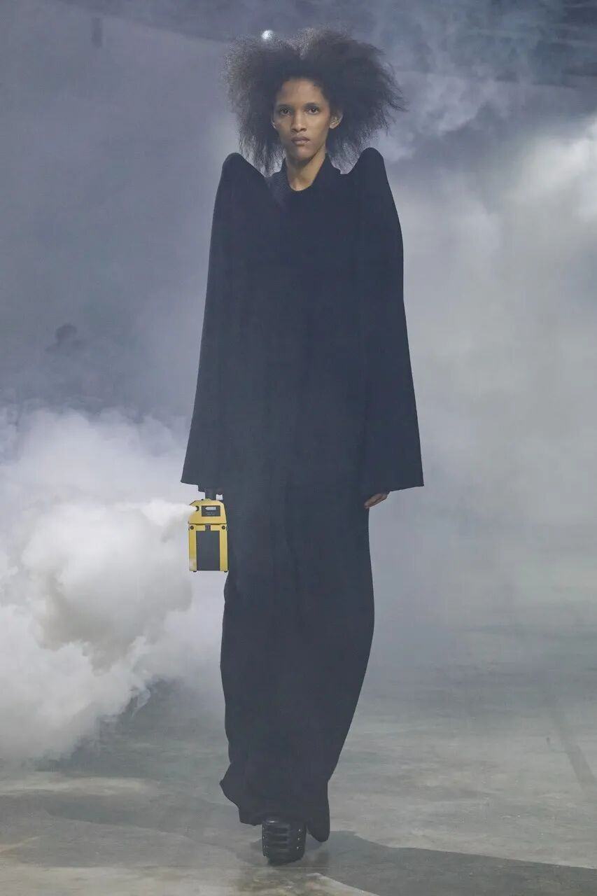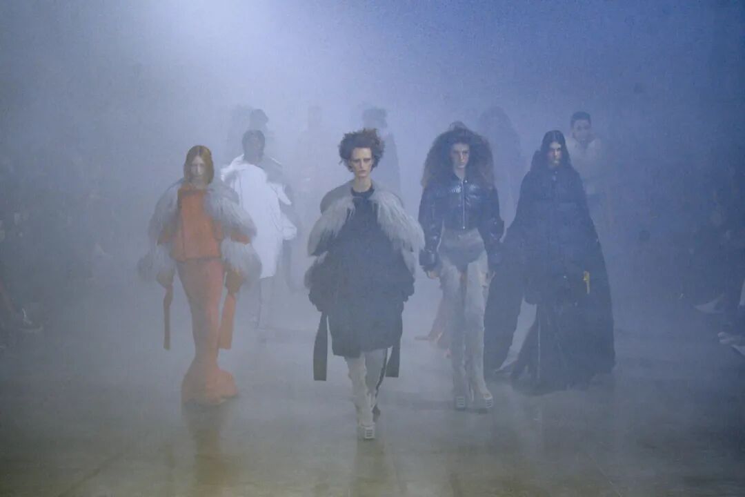 Rick Owens 2022 秋季系列用烟雾机将他与 Aesop 合作的气味注入于 Palais de Tokyo 的秀场空间中。