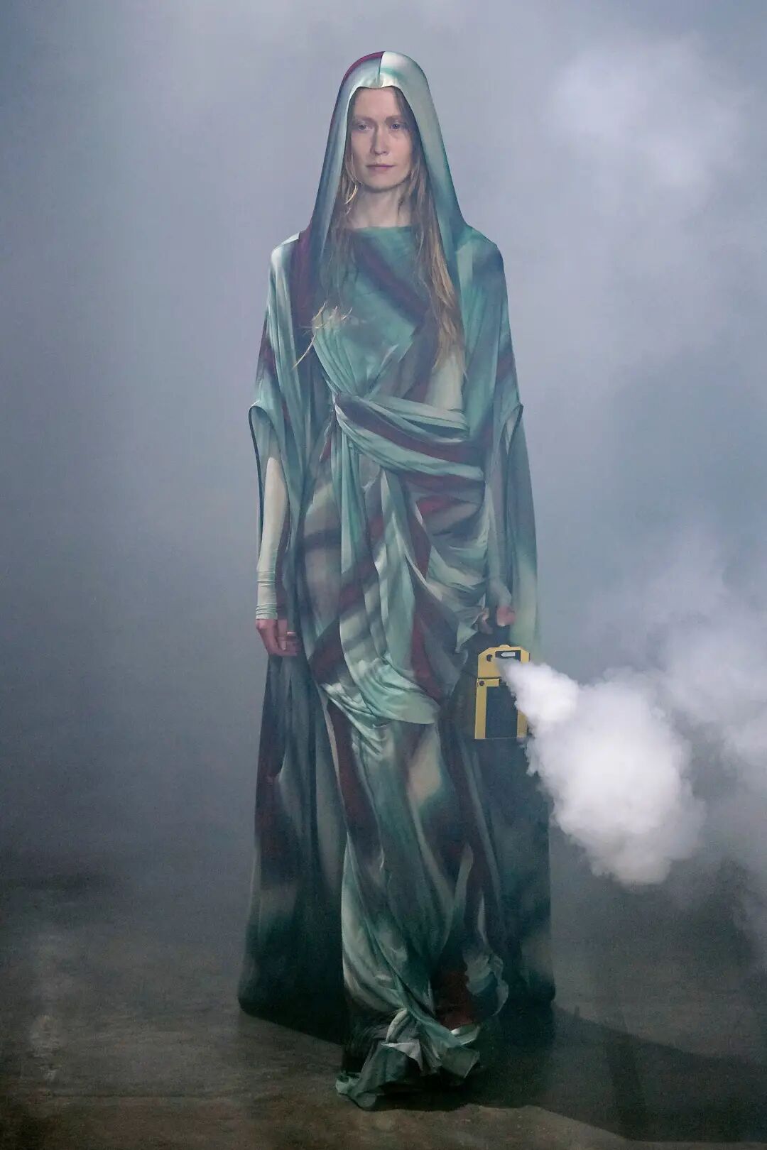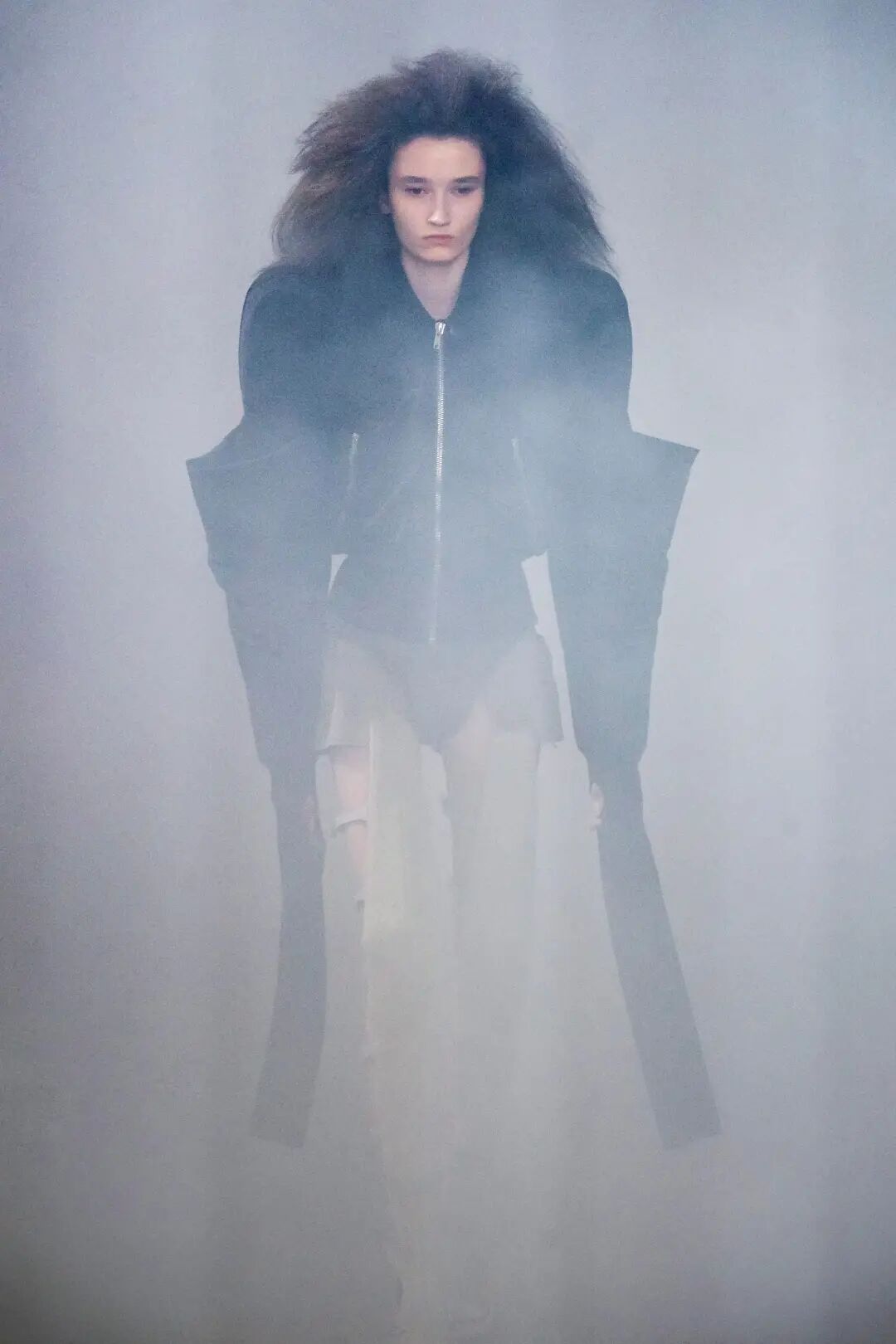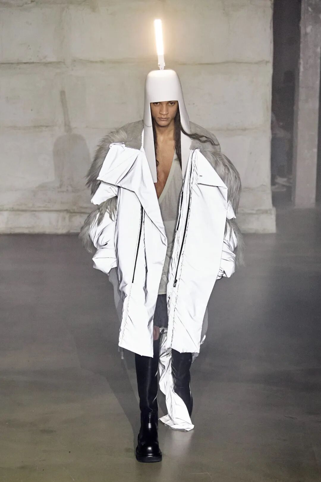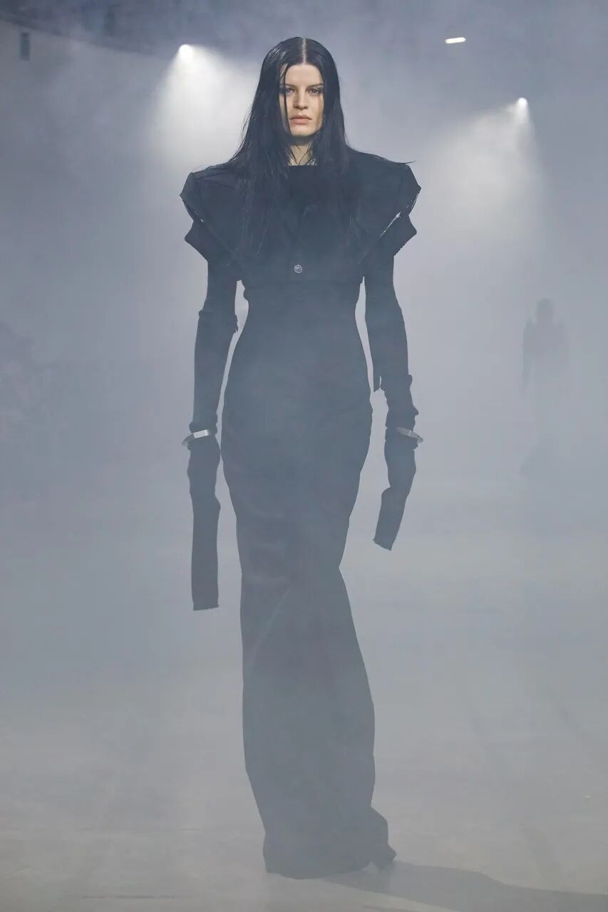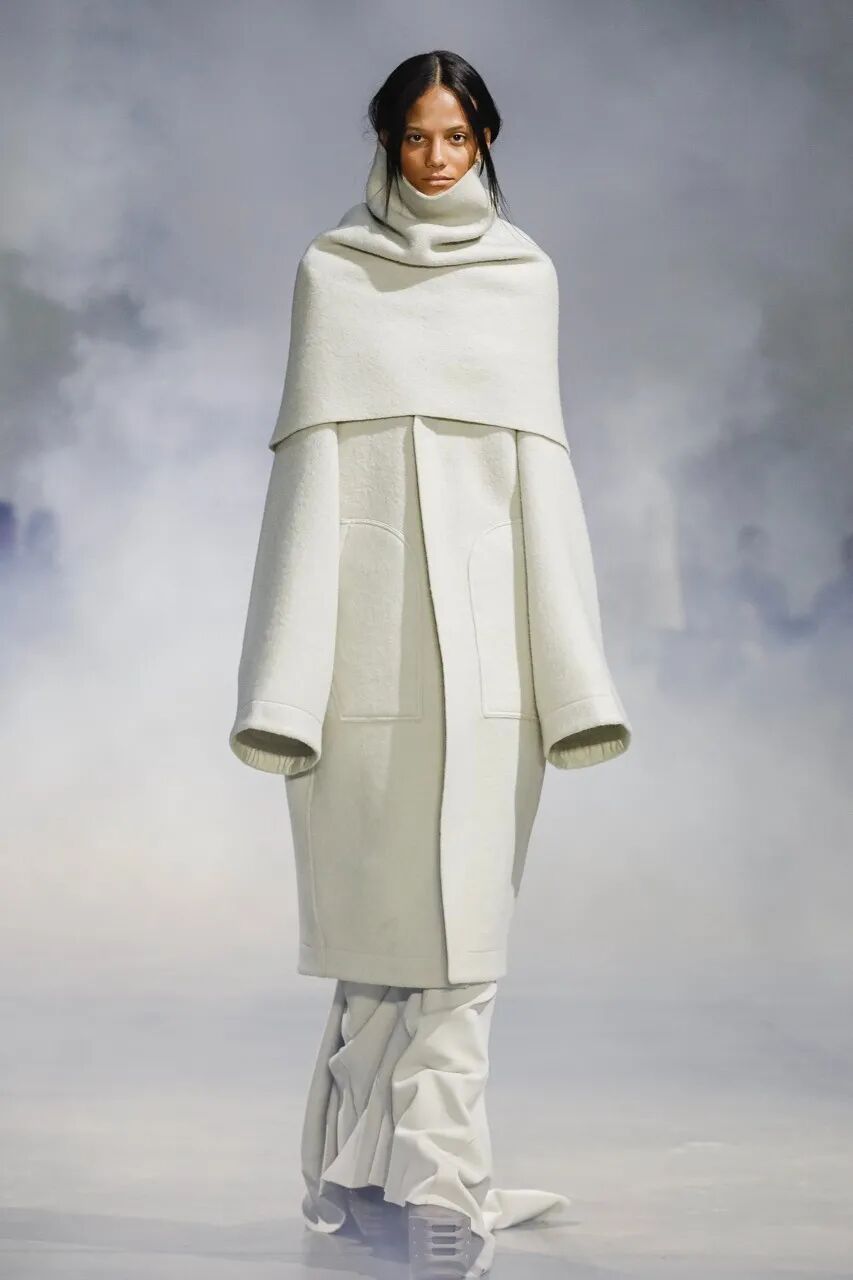 Rick Owens 2022 秋季系列用烟雾机将他与 Aesop 合作的气味注入于 Palais de Tokyo 的秀场空间中。