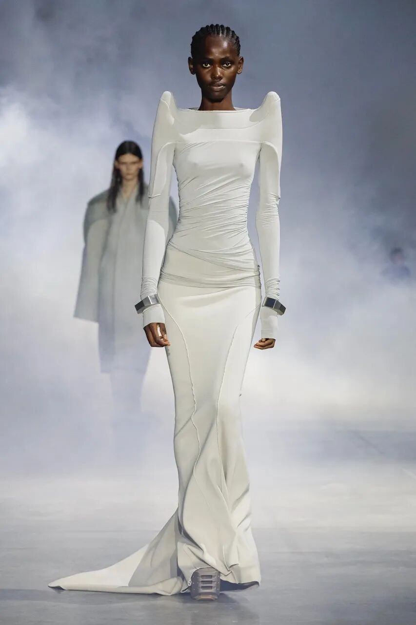 你可以在Rick Owens的设计中读到,面料不再是为了包裹身体而存在的,它们是一种表达个性、表达思想、表达内心的武器,打开了束缚的萦绕才能让你的思想与身体一同的解放。