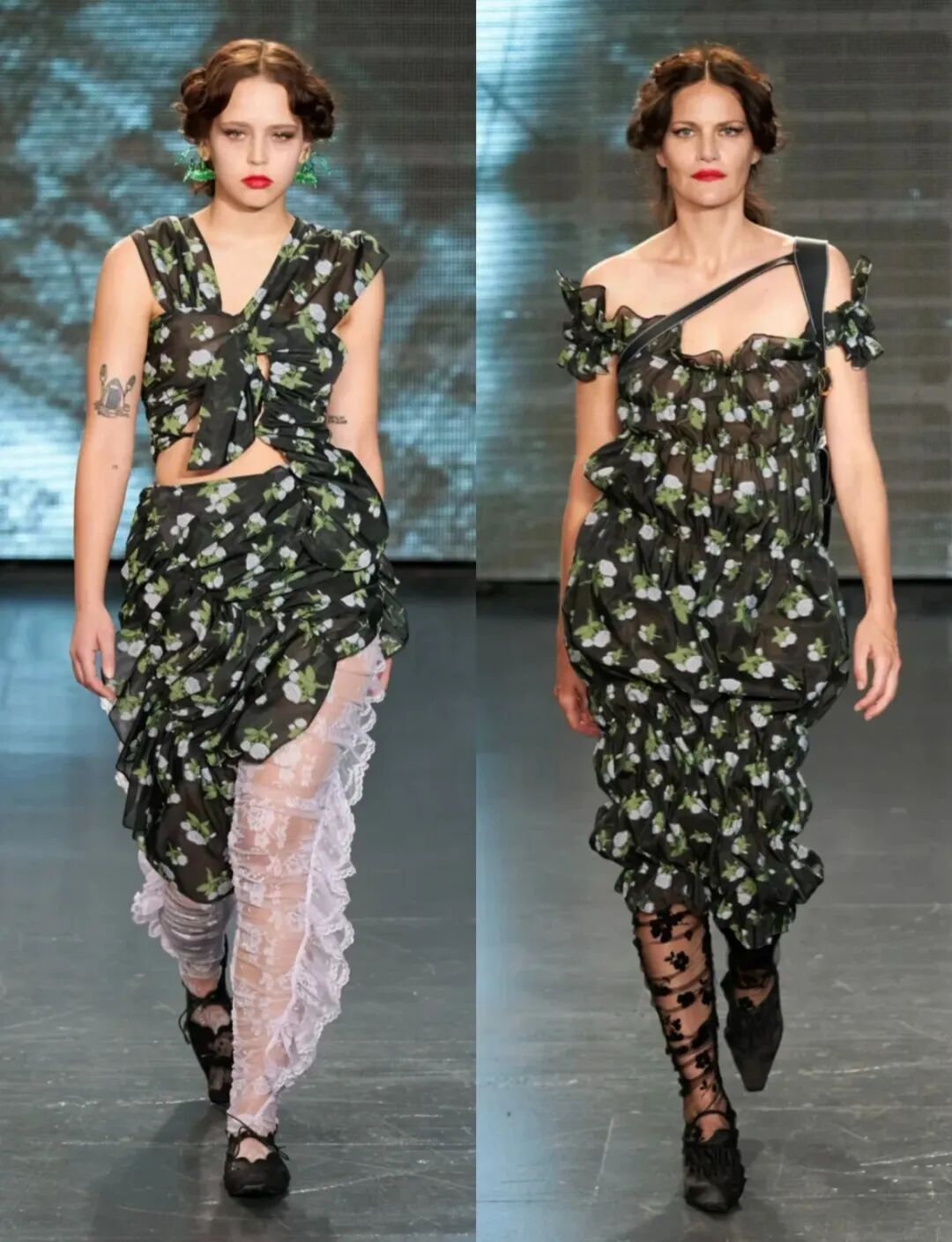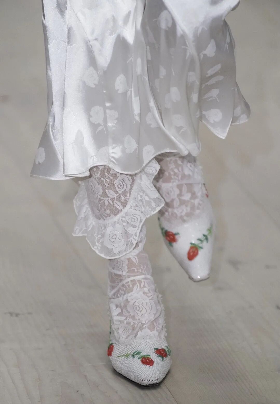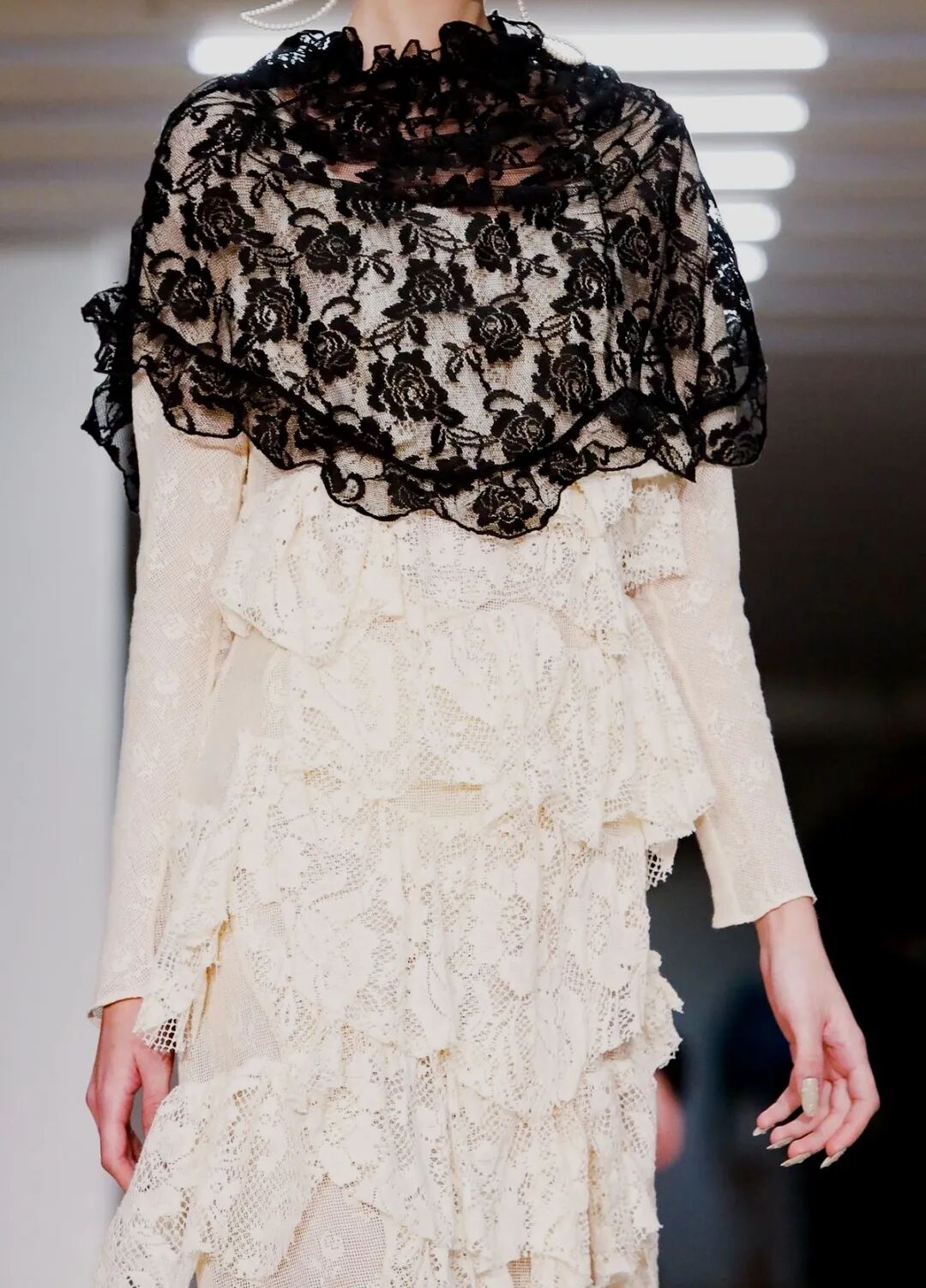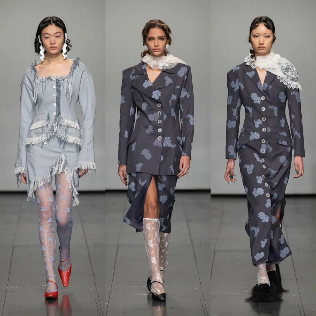 女神在新时代的语境下不再是高高在上的完美化身,设计师王予涵将浪漫的提花元素与蕾丝布料相结合,用拼贴与挖空设计,呈现“不完美之美”。
