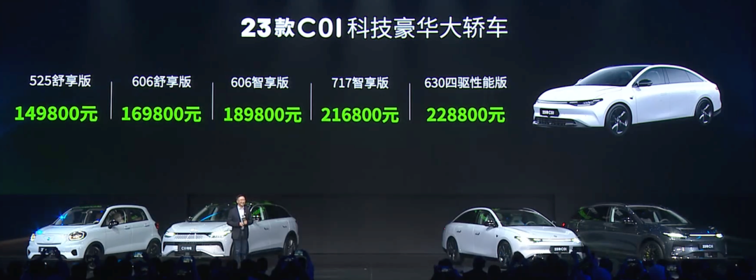 3月1日,零跑汽车连发四款新车,并公布2023款零跑全系车型价格。其中,新款C01售价为14.98万- 22.88万元。