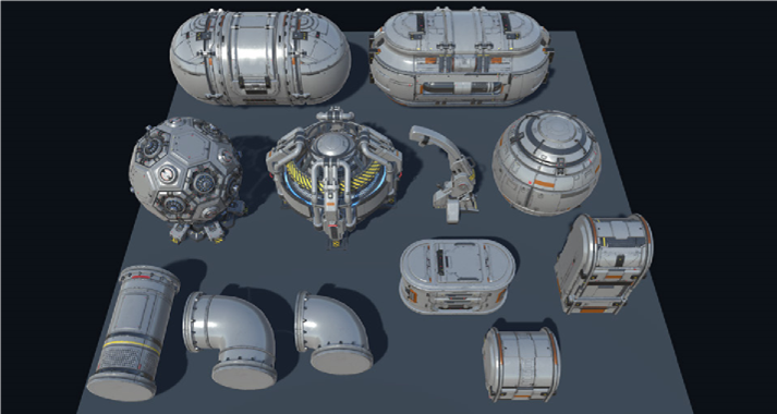 较大的嵌套式Prefab可以由较小的Prefab组成 . 例如,左边的Prefab包括许多电力变压器Prefab,而右边的预制板则展示了不同材料的管道预制板的变种.