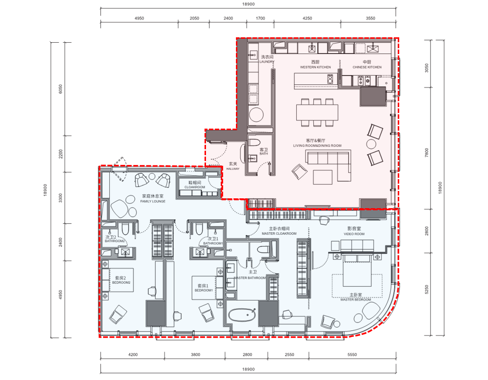 不过,我们从其它城市的创新案例,看到了大平层产品新的可能,像华润深圳湾瑞府400㎡户型,通过隐形门和家庭休息室的设置,创造出完全分隔的两个区域,在居家模式和待客模式之间自由切换。