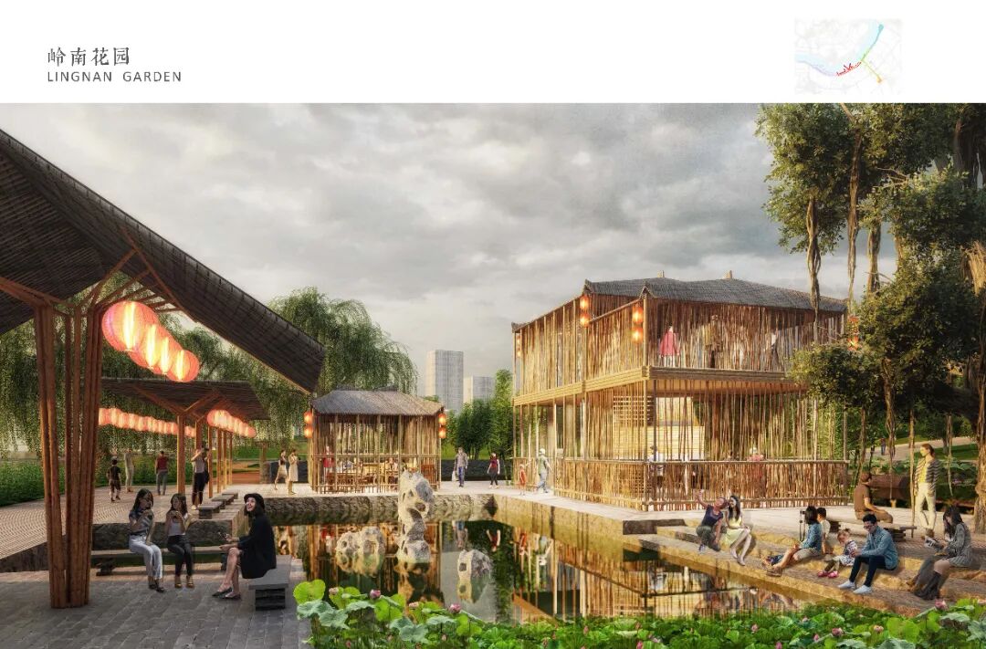 岭南风情水岸,有灵感来自岭南精神的标志性建筑和花园。