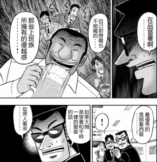 这个故事描写了原著一个小BOSS的日常,当时主角伊藤开司被关入地下设施,在暗无天日的地下做苦力还债,而这家伙就是伊藤开司的班长,在赌局中骗走了开司仅剩的钱,不过后来被开司翻盘,把班长的攒下的存款全都一扫而空。