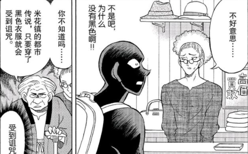 而如果去买衣服,你会发现这里买不到全黑的衣服,因为传说全黑色是受诅咒的颜色,一旦穿着全黑出去,立马就会被不知名的视线盯上(柯南:恩?我好像看到了酒厂成员?)——