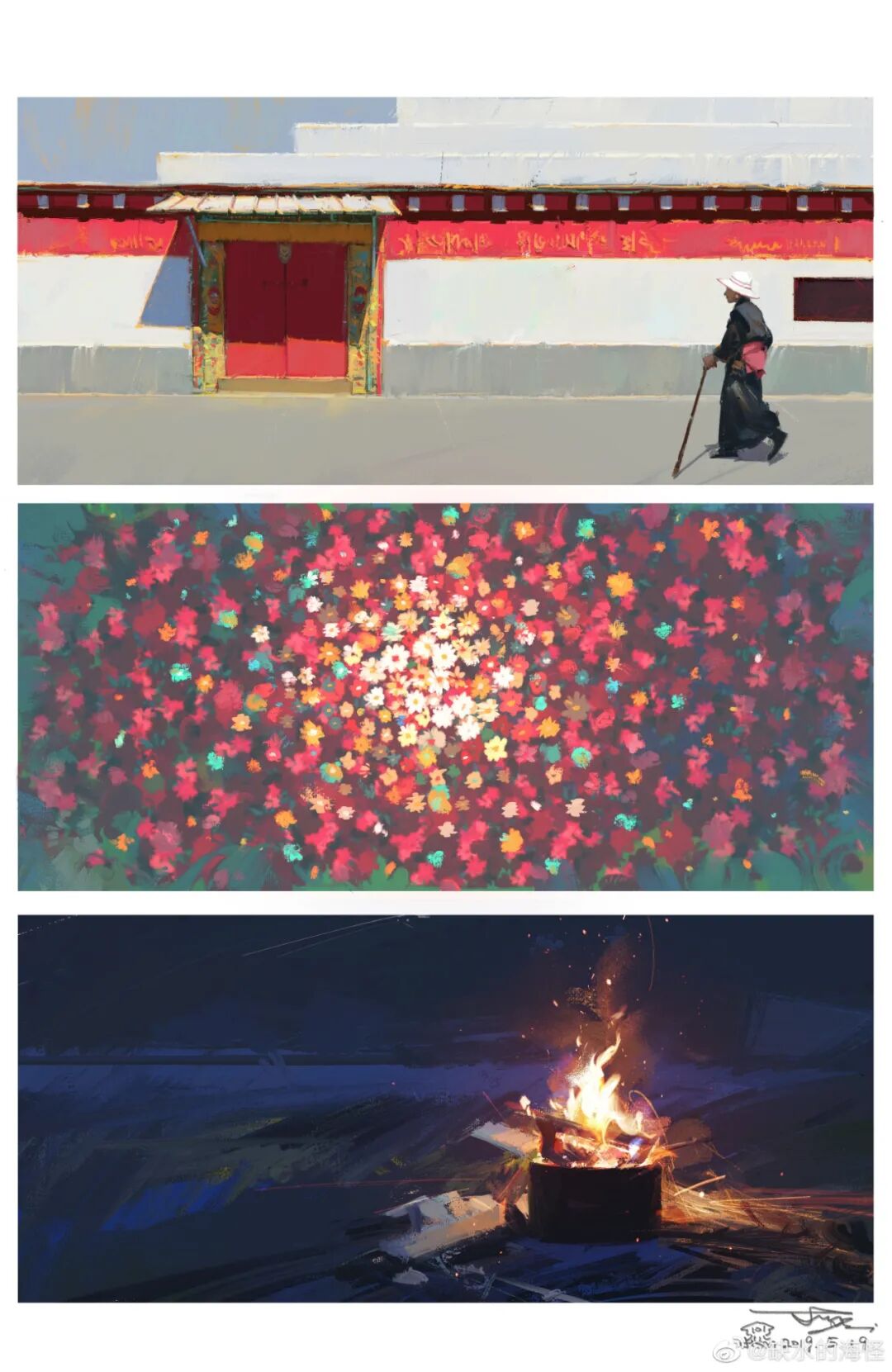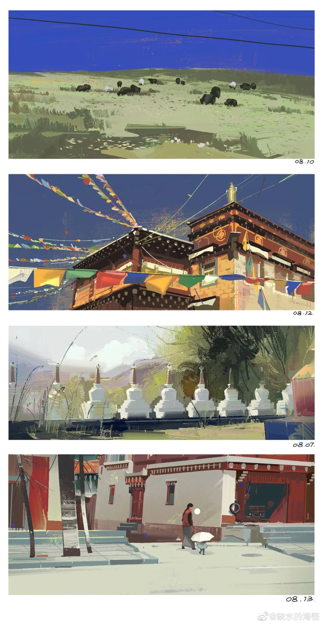 缺水的海怪:我去过几次高原后,现在主要做一些奇幻人文,安静且有点关怀的题材作品。以前会刻意训练自己的风格,但是后来发现练的更多是技法,那样的技法更多的是在卖弄,不够真诚。因为风格是人的风度品格,它在人的不同时期呈现出的状态不同,它是一种无意间流露出的习惯,所以接纳自己,顺其自然反而能形成自己的风格。