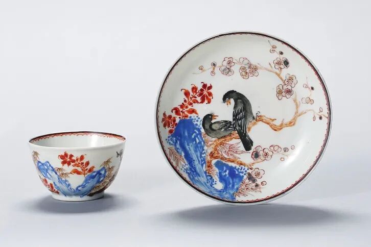 同时,广彩仿照中国锦缎纹样织金的手法,将金线描绘在瓷器上用以装饰。