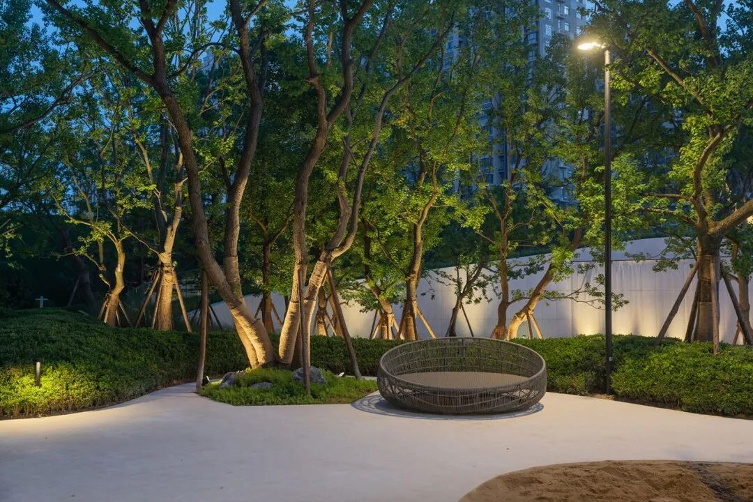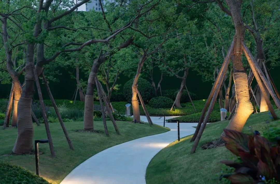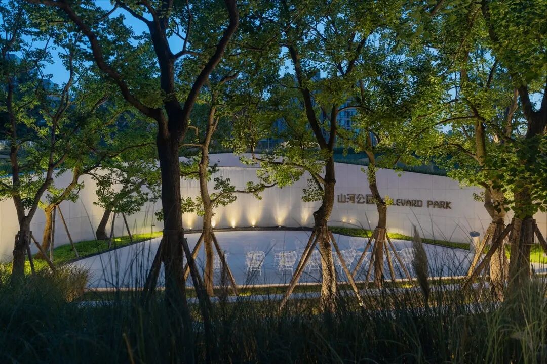 山河道结合公园城市的设计理念打造十字轴人行广场,结合街角公园、街心广场、银杏大道、幼儿园等配套设施,构建成为一个完善的“十字街区”生活体系。将颍河公园打造成城市中的森活空间,突出山中森林,流动的河的概念,在功能设计上融入趣味性的设施,增强公园的自然属性与可玩性。颍河路绿意改造,将绿荫大道和城市记忆融入到道路改善中,与街区配套一起构建完善的绿色空间系统,形成完整的景观生态体系,打造“公园住区”,为城的进阶灌注氧动力。