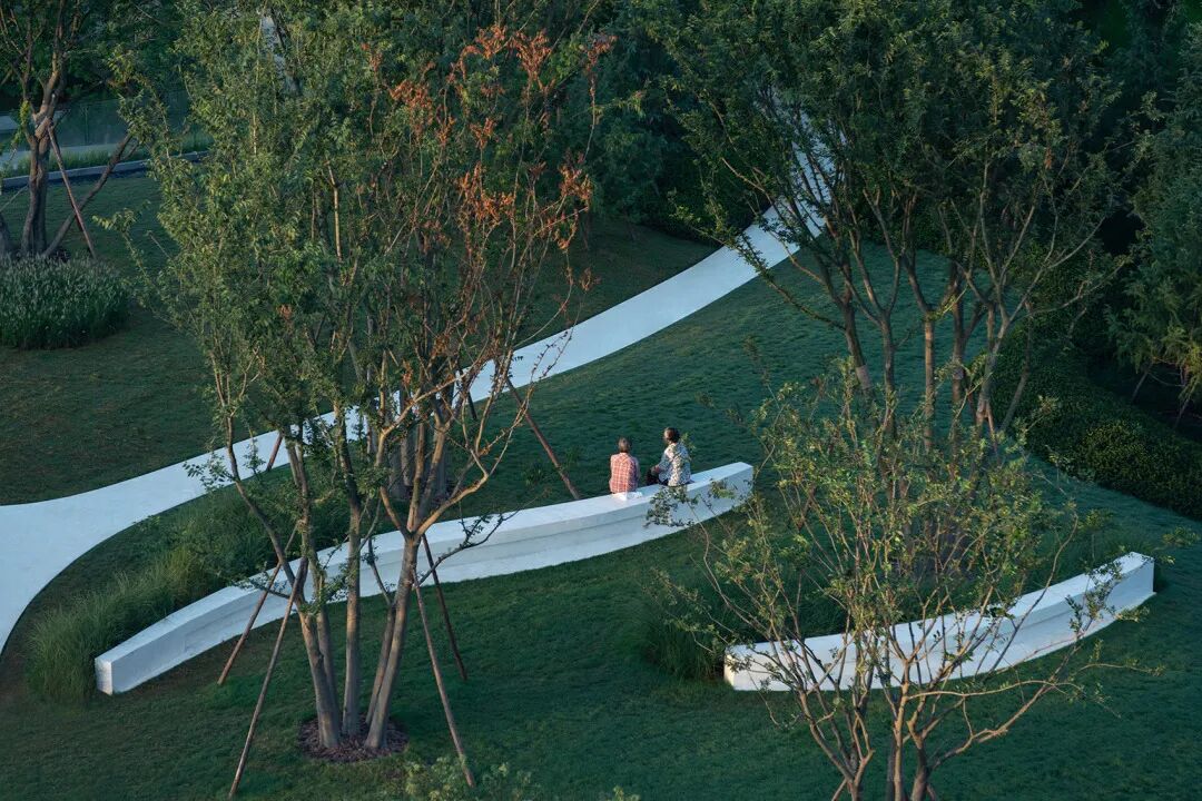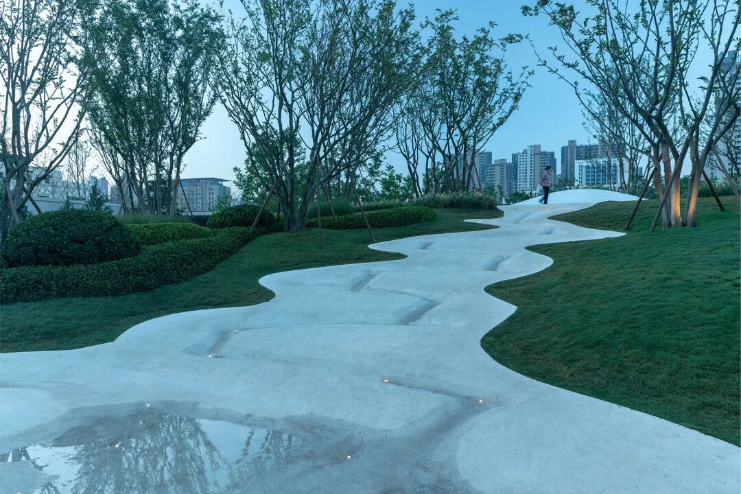 场地堆坡3米,把原本平地公园赋予山河语言,摒弃传统的空间单一,打造多维度的空间体验感 , 还原中原区域人群的山河梦。一个山坡一种综合性、包容性的场地处理,引发对三维的“空无”的创造。