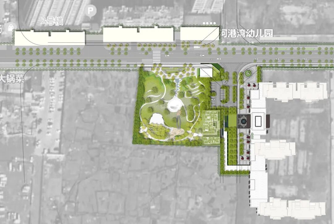 结合前期分析,确定场地的功能分析及流线关系,设计总平面,并设计景观节点及平面相关细节。
