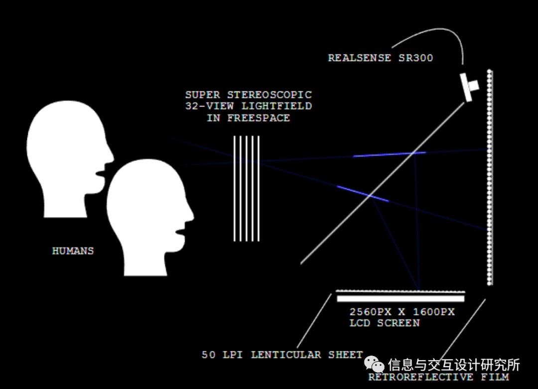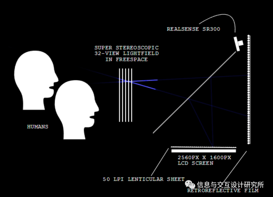 HoloPlayer One系统的核心是一个液晶显示屏,可以同时向特定的场景发送32个视图。这就创造了一个“光场”,构建一个场景。然后将光场回射,在HoloPlayer One之外形成一个真实的图像,让场景呈现在半空中。