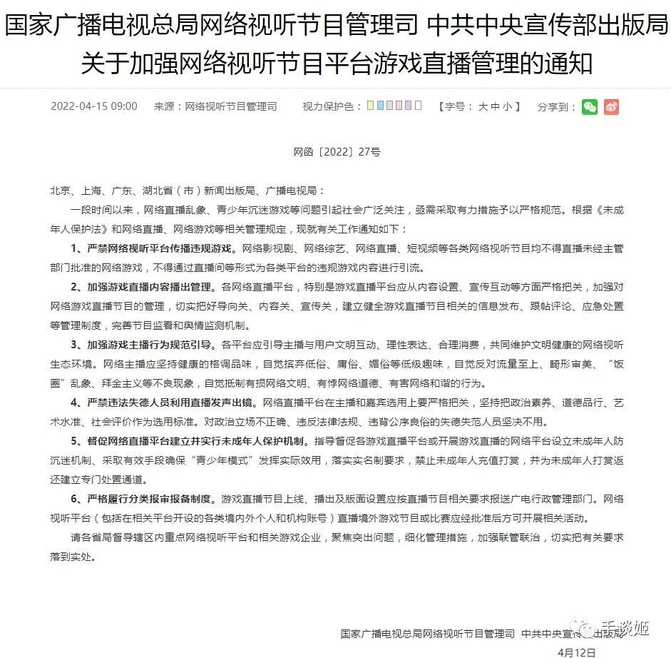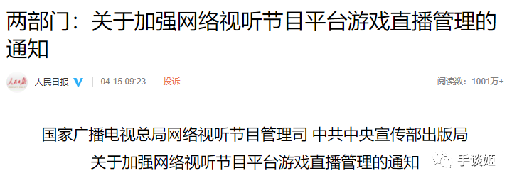今天早上的时候,突然有了一条热搜,说“网络平台不得直播未经批准的网络游戏”。