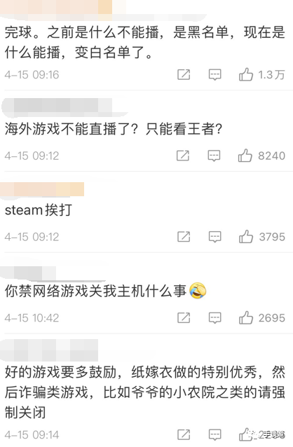 这下,网友们突然就有点不高兴了,时隔半年多,好不容易发下来40多个版号,还没捂热乎呢,难道游戏直播又要寄了?