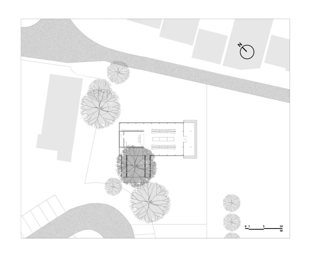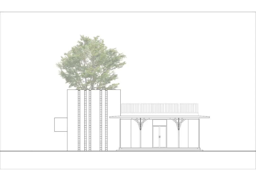 构思这个小建筑的时候,正值新冠疫情爆发后的2020年4月。设计师房木生从广东现场回到北京,莫名被自隔离的社区管理部门强迫去酒店隔离。房木生根据现场照片在Ipad上绘制草图,同时在隔离酒店内做了一系列“抗役名画Cosplay挑战”的行为艺术,引发了朋友圈的围观。这是一个在疫情中构思建造的小建筑,它的通透、开放、简洁,以及对自然树木的热爱共生状态,与疫情中我们的被隔离、封闭、复杂和人与人之间紧张的接触关系形成了强烈对比。三年的“抗役斗争”终于结束了,谨以这个小建筑的发表,致敬逝去的三年时间,迎接美好的未来。