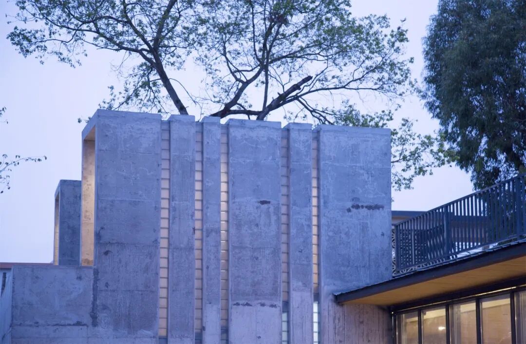 ▽粗糙清水混凝土与显得精致的玻璃砖
