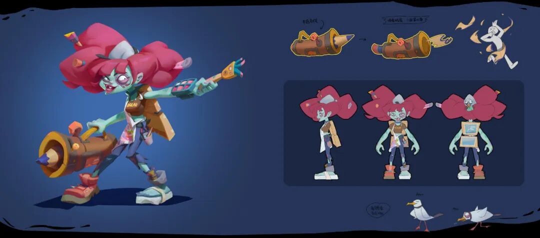 吵集仁儿:设计角色的时候会先确定要表达的关键概念,之后就一路脑补,如果我是他会在这个世界观中怎样生活,吃什么东西,用哪种武器,还有可以把背后交给对方的伙伴,从丰富、复杂的故事中找几个有趣的元素做设计点。