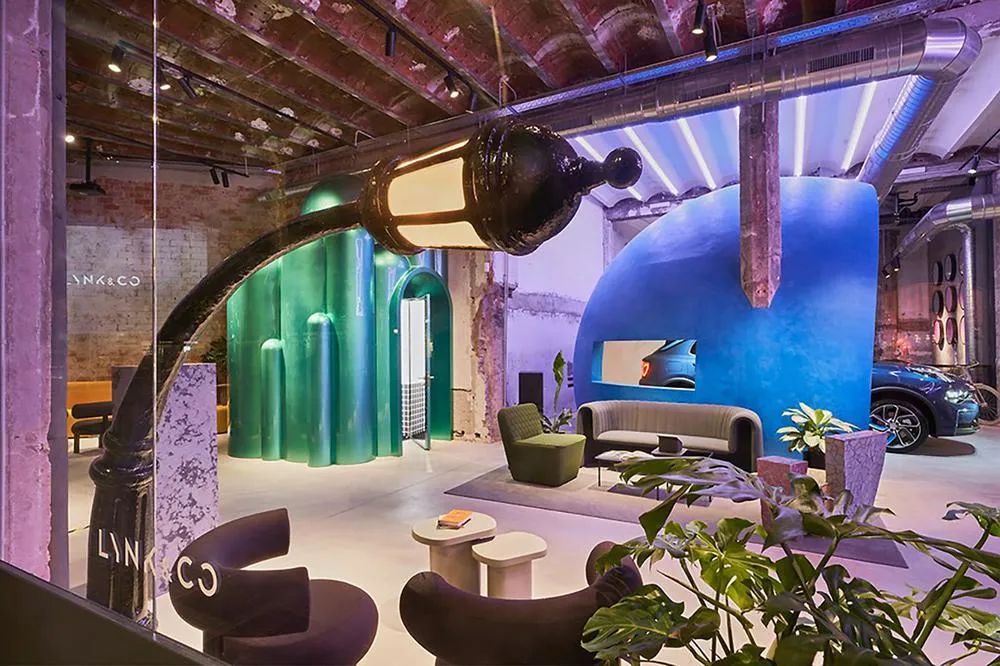 在这里,你还能发现Lynk& Co特意选择的与可持续发展概念相关的一些产品的展示空间;还有令你意想不到的以泳池为概念设计的协作空间,位于之前的一个旧安全门的后面。