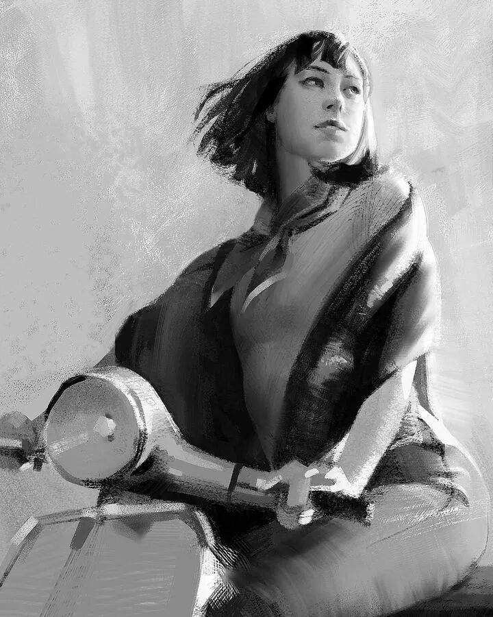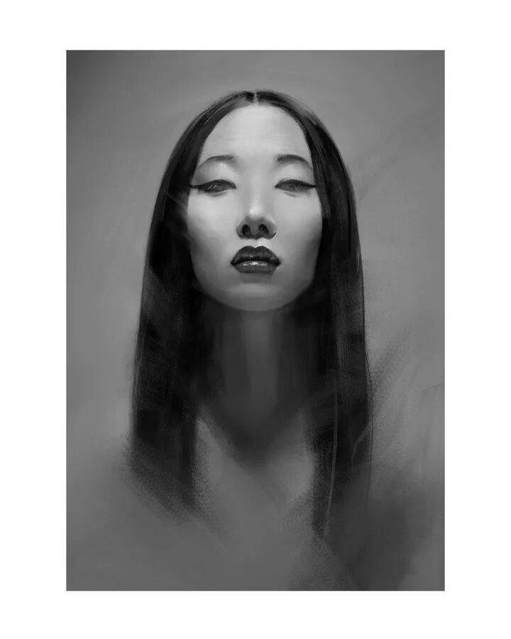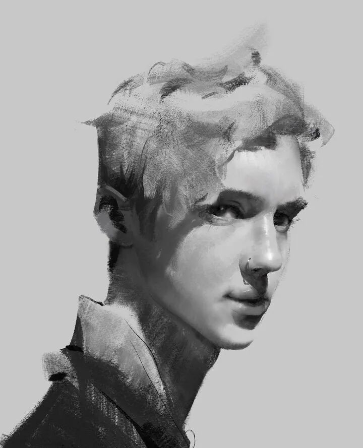 Angela Sung的作品个人风格强烈,不过黑白稿则能看出她有着非常扎实的基本功,人物的造型功底和光影表现都很突出。