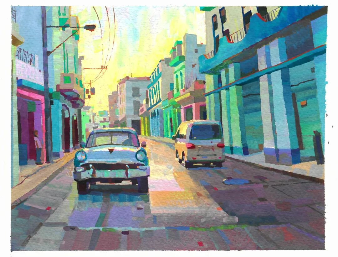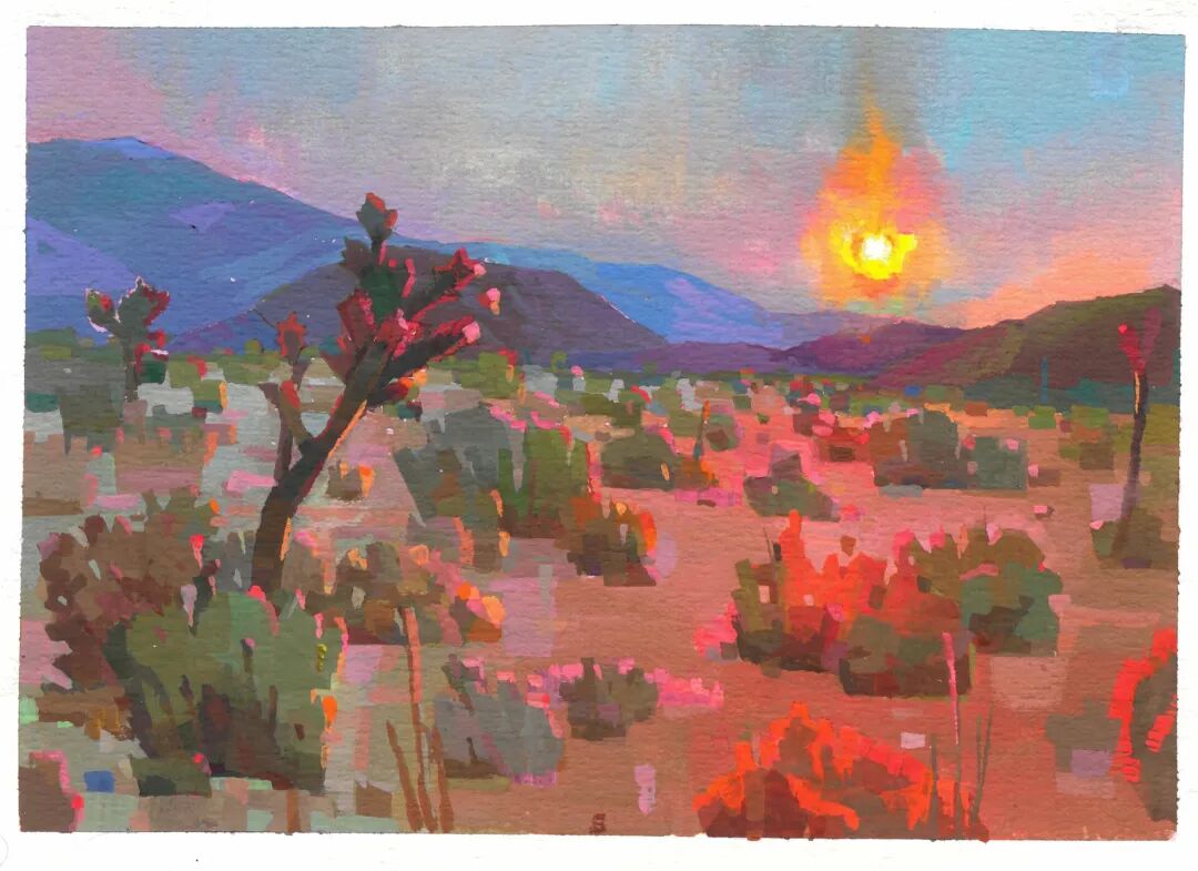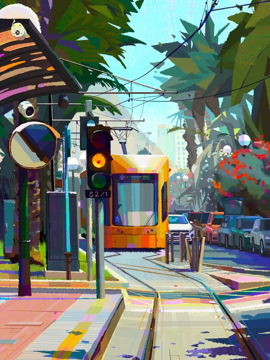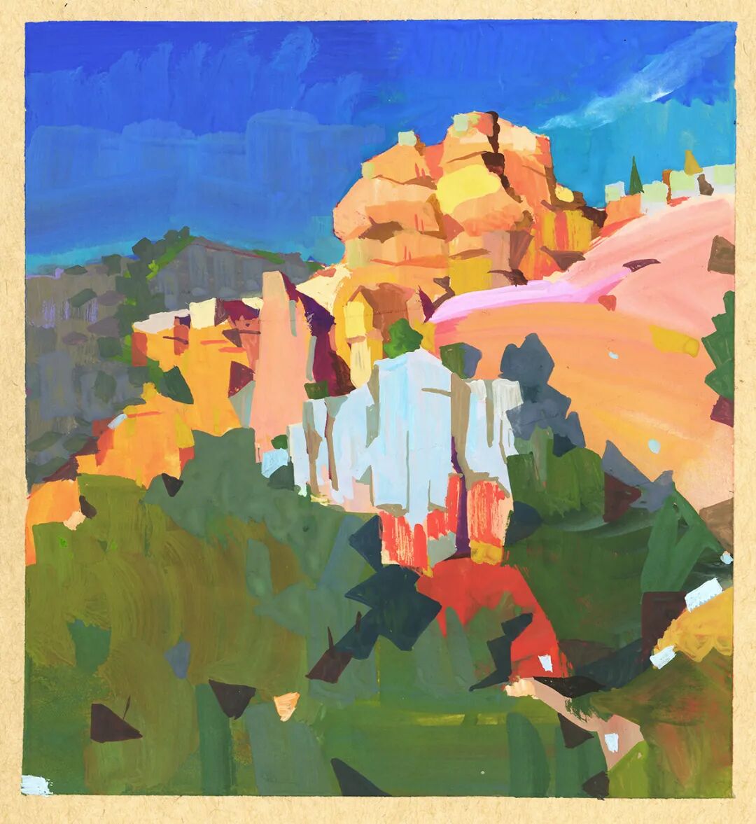 作为一位在动画行业有着丰富经验的艺术家,Angela Sung不仅擅长数字板绘,而且水粉油画这种传统艺术她也有涉及,许多个人作品都是她在旅途中的速涂,色彩丰富的色块呈现出和谐舒适的自然风景,看完让人感觉心情十分舒畅。