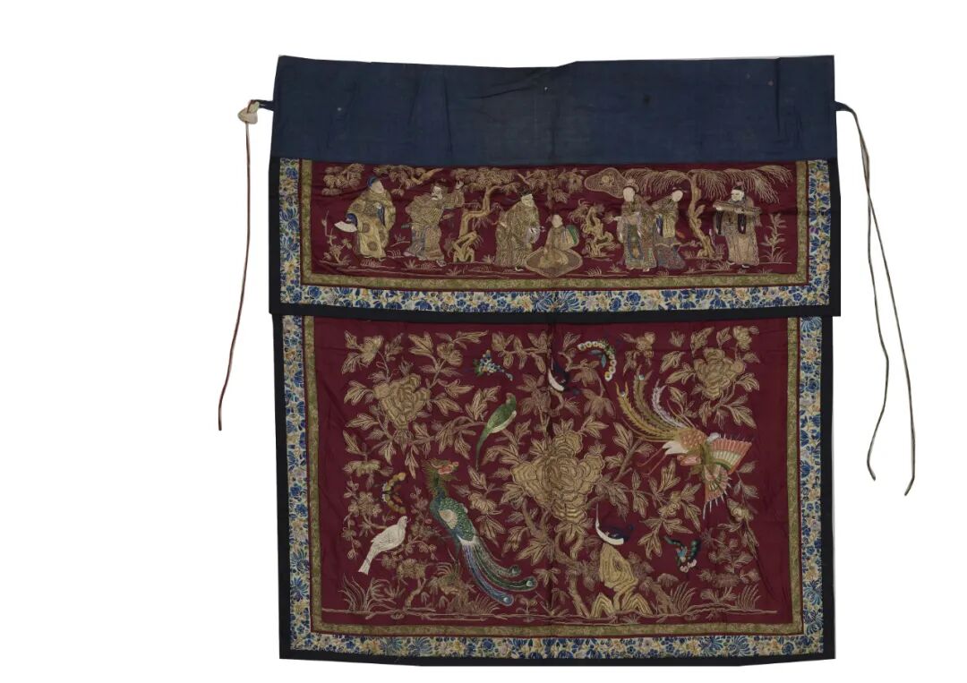 为了更立体地呈现这批藏品,该展览尽可能地挖掘与耙梳出与之关联的各种信息和要素,竟然发现当年广美老先生们收集的这批潮绣,在主题内容上暗藏了一条可以完整贯穿一名潮汕人从生老病死,到公共与私人生活方方面面的线索。