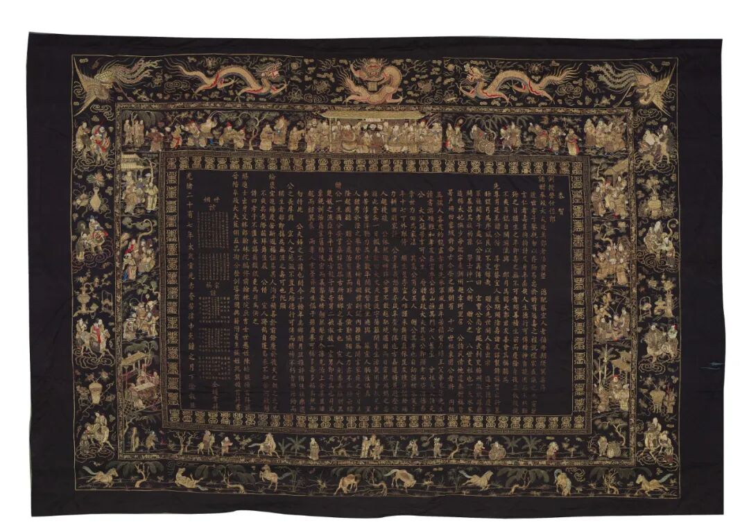 馆藏大寿账是本次展览重中之重的珍品,也是潮绣大彩帐品类中的的典型,更为难得的是该大寿账是目前公共收藏机构中仅见的,品相完整,工艺水准高超的大型潮绣品类大彩帐的经典案例,也是研究潮汕地域社会人文,民俗礼规,审美趣味等等方面的典型素材。
