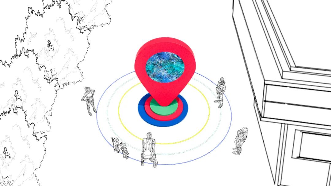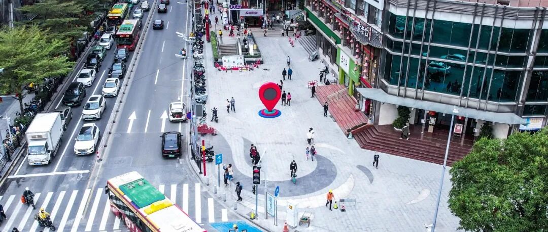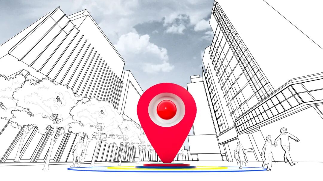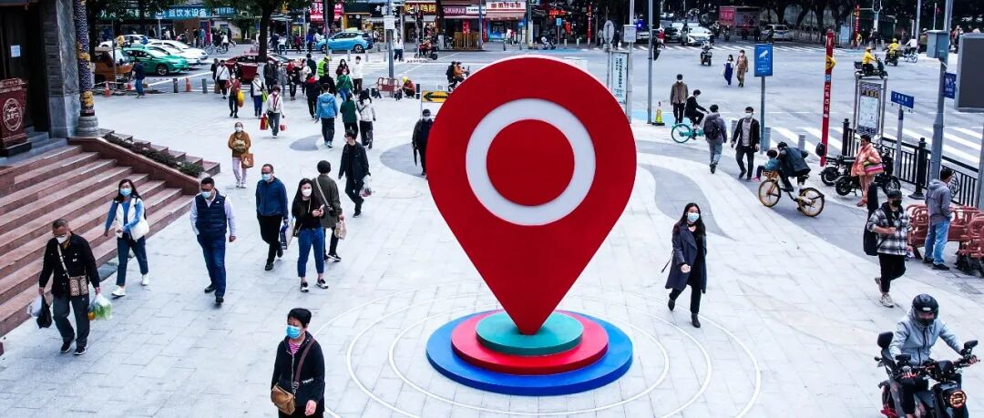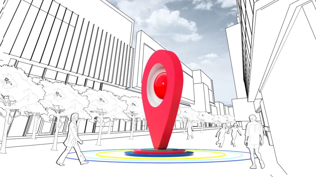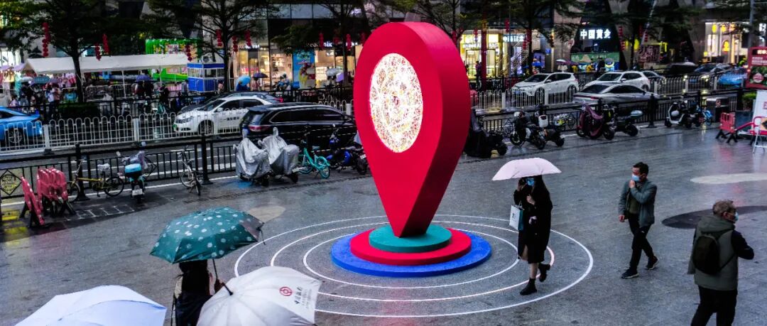 标志性:以大众熟知的“导航定位”符号作为整体设计概念来源,一,表达江南西的“新定位”,寓意整体升级改造后的重新出发;二,表达江南西作为广州新潮流先锋的“新地标”;三,代表未来通往元宇宙世界的“新入口”。