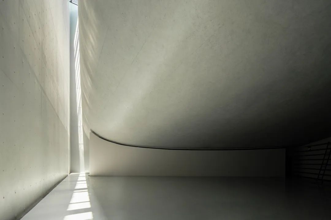 建筑的室内空间由混凝土墙和屋面构成。阳光从 24 米高的狭缝直射地面,营造了哥德式教堂般高耸宁静的气氛。让人安静下来,阅读,思考。