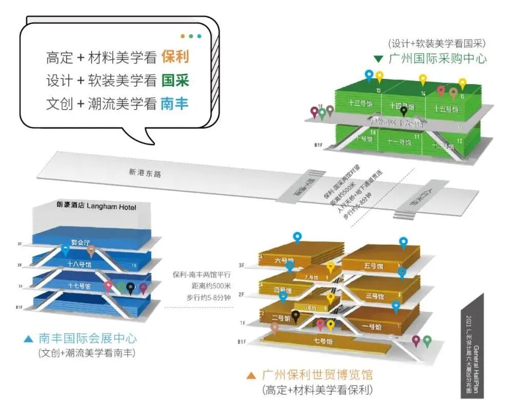 12月9日-12日,2021广州设计周开幕,展期共4天,广州保利世贸博览馆+广州国际采购中心+南丰国际会展中心3馆联动。