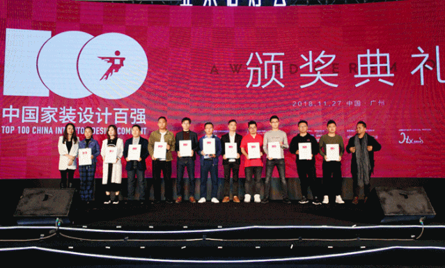 2018年经过五个月的征集,共收到2520家全国各地经销商报名,其中504家通过初评入选“中国设计选材金牌服务商”,最终通过优中选优,当中100家经过复评脱颖而出,荣获 “中国设计选材金牌服务商TOP100” ,11月27日,TOP100经销商代表齐聚广州设计周,由刘锐、刘增申、沈劲夫、蔡祝源、管杰、徐庆良、高雄、王笑野、孙少川、朱永春、郭侠邑等知名设计师为其颁发了沉甸甸的奖牌,为好设计的背后服务力表彰加冕。