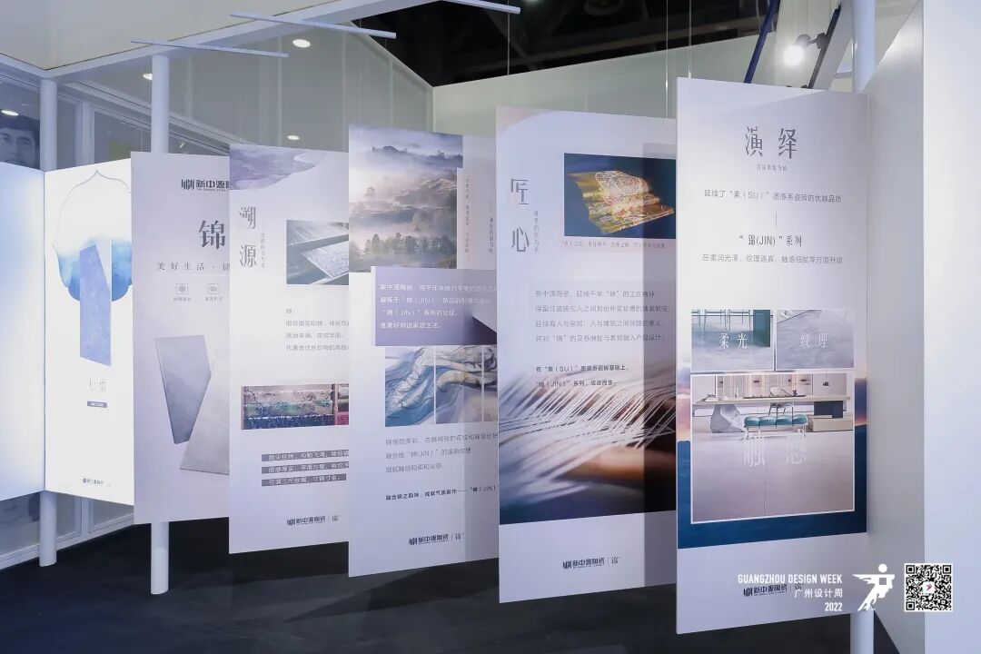 本次广州设计周上,新中源在充满质朴与舒适感的空间中,展示了“锦JIN”系列,该系列也是其素简之美代表产品“素(SU)”质感系瓷砖的全新升级。